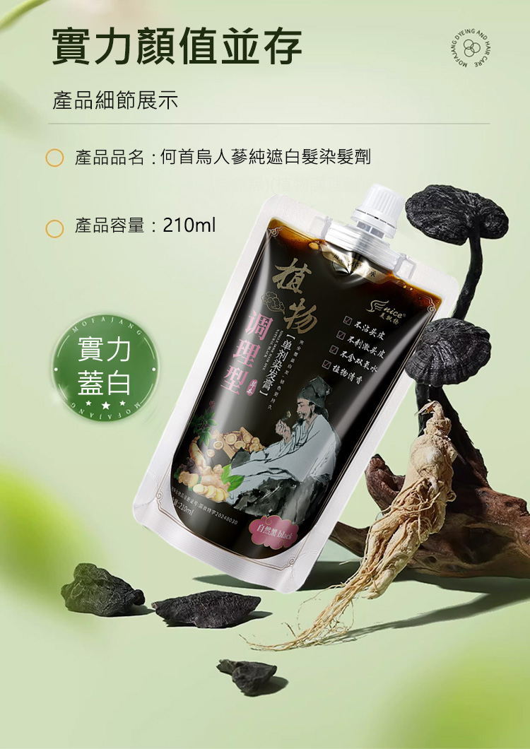 何首烏人蔘純遮白髮染髮劑