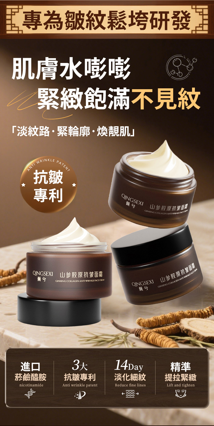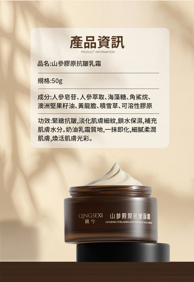 【皺紋一抹消】山參膠原抗皺乳霜