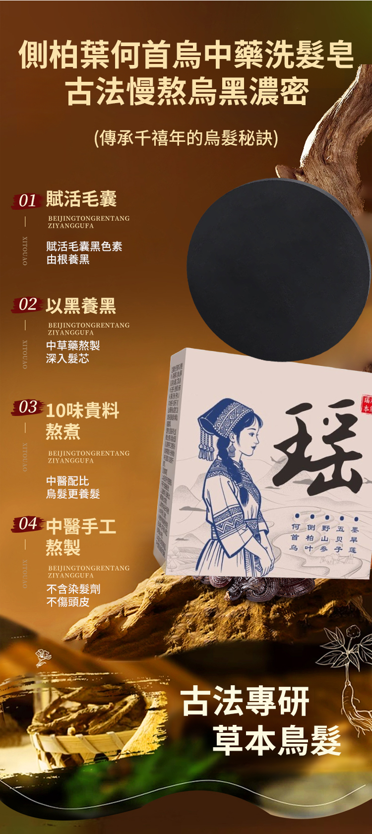 人參何首烏黑髮皂