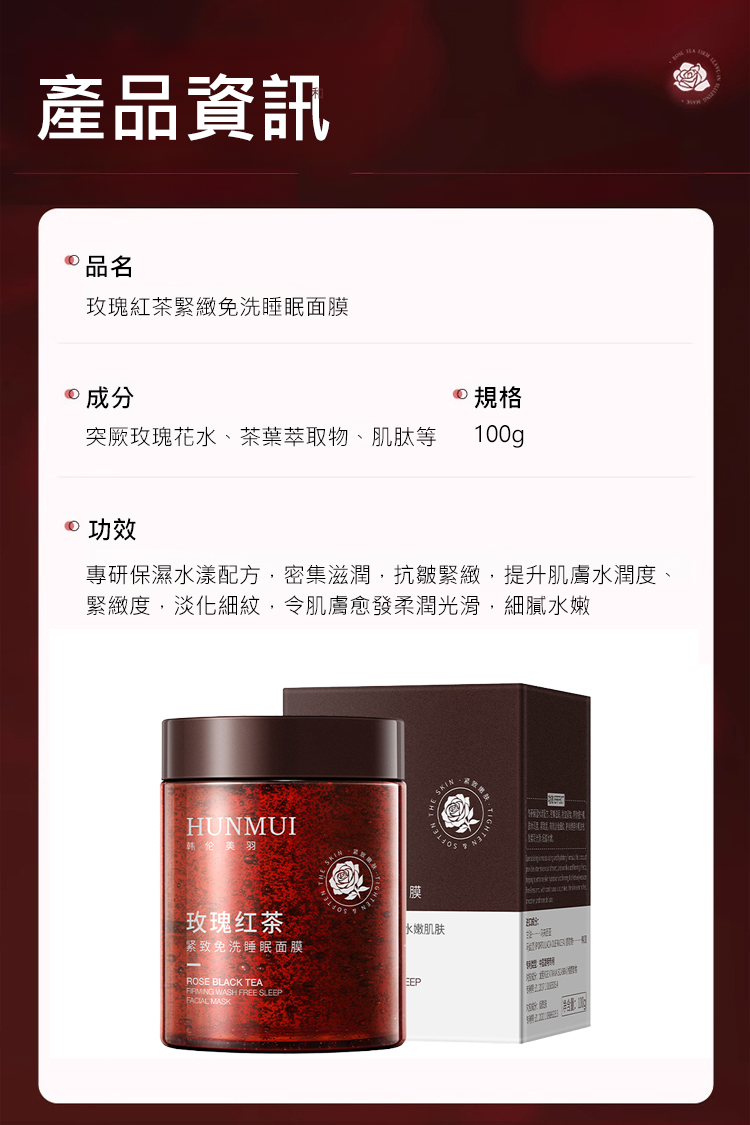 玫瑰紅茶緊緻免洗睡眠面膜