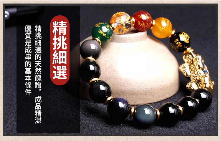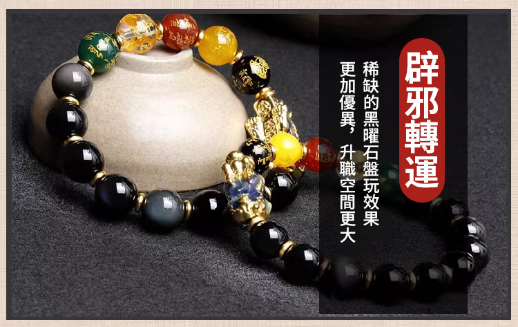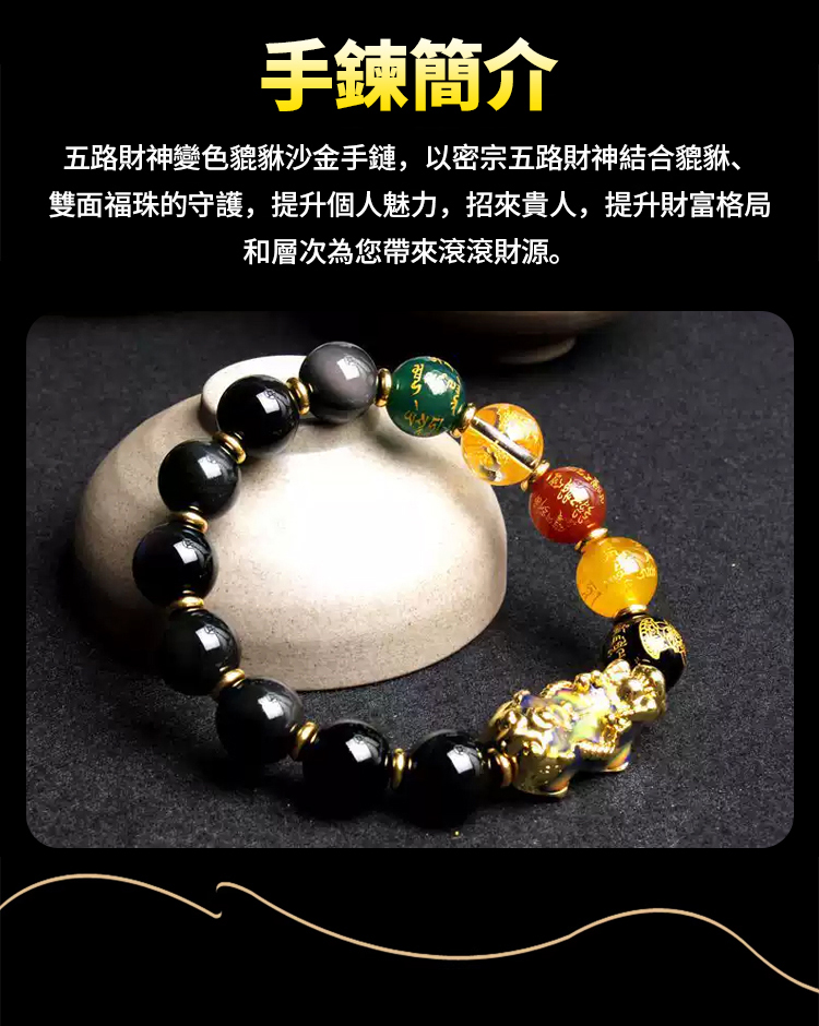 黑曜石貔貅五路財神手串