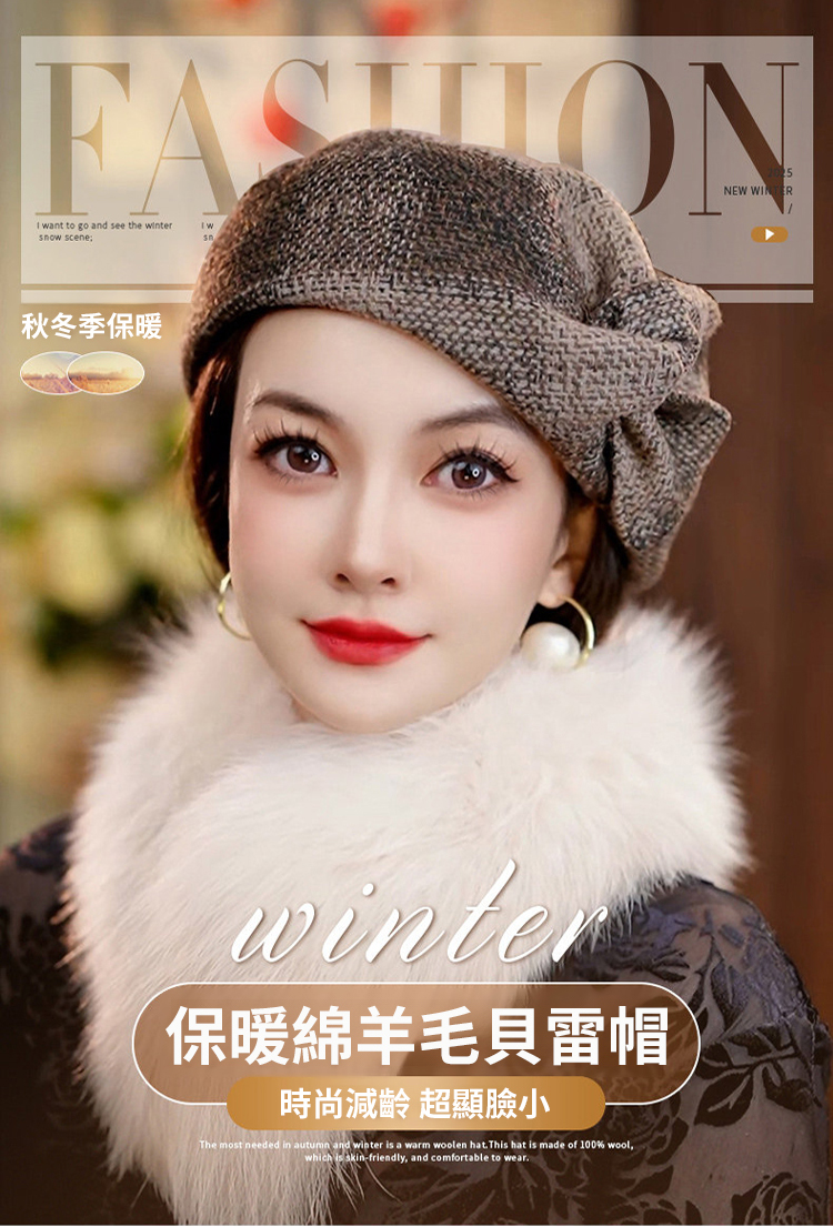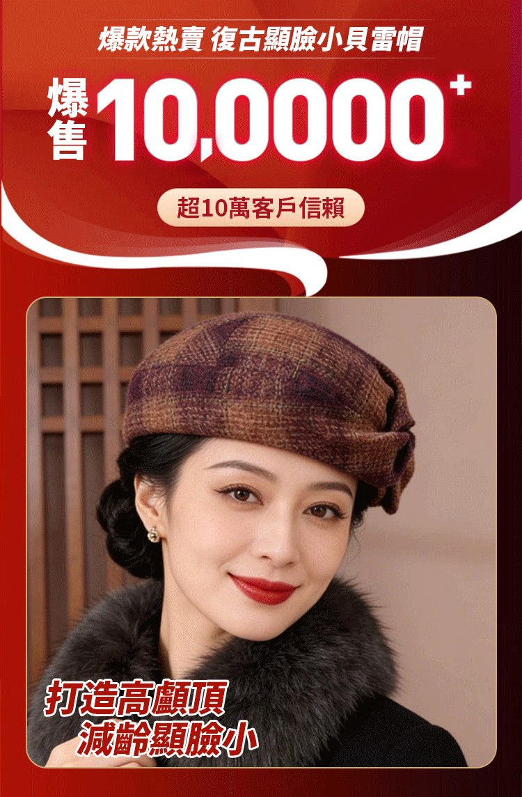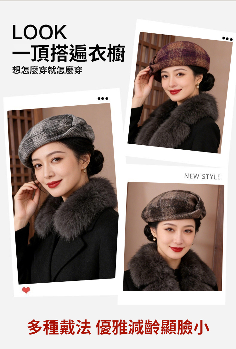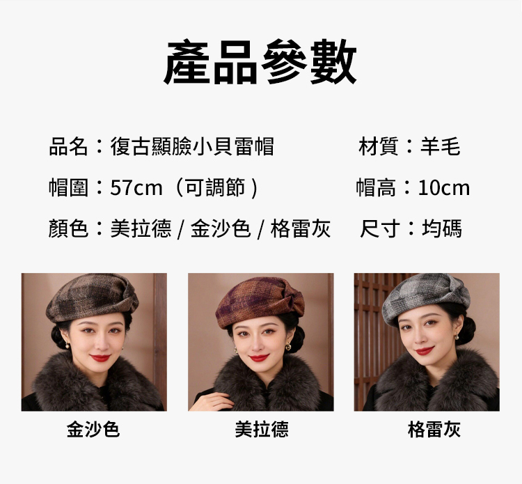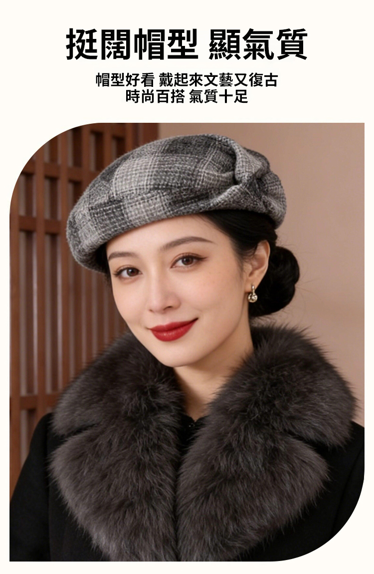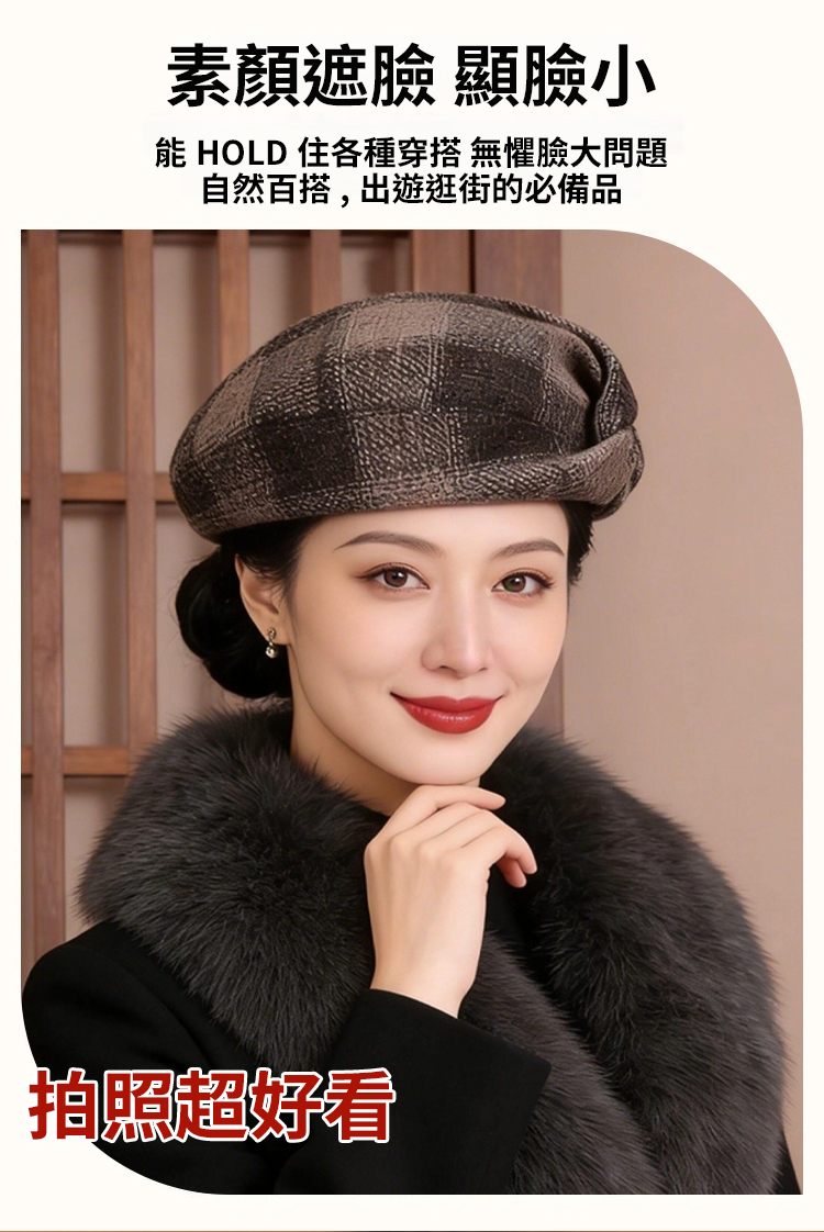 復古顯臉小貝雷帽女