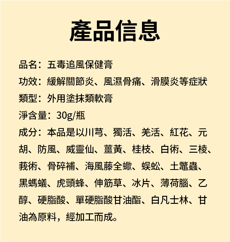 五毒追風保健膏頸肩腰腿